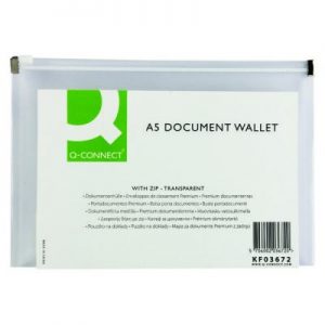 Q-Connect Document Zip Wallet A5 Transparent (Pack of 10) KF03672