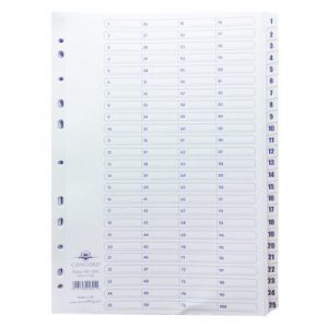 Concord Classic Index 1-100 A4 White Board Clear Mylar Tabs 05701/CS57