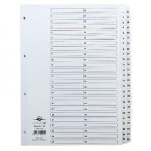 Concord Classic Index 1-50 A4 White Board Clear Mylar Tabs 05501/CS55