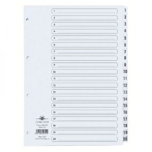 Concord Classic Index 1-20 A4 White Board Clear Mylar Tabs 00701/CS7