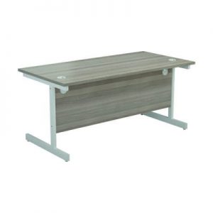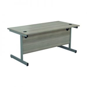 Jemini Single Rectangular Desk 800x600x730mm Grey Oak/Silver KF800295