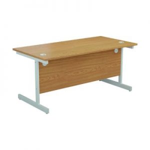 Jemini Single Rectangular Desk 1800x800x730mm Nova Oak/Silver KF801381