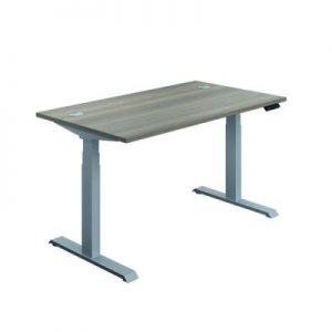 Jemini Sit/Stand Desk with Cable Ports 1600x800x630-1290mm Grey Oak/Silver KF809944