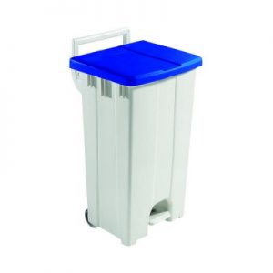 Grey 90 Litre Plastic Pedal Bin With Blue Lid 357003