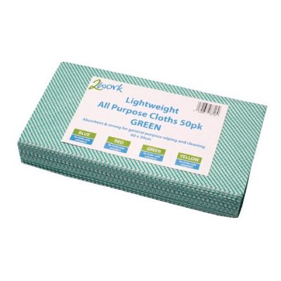 2Work All-Purpose Cloth 600x300mm Green (Pack of 50) 102840GN