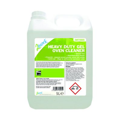 This 2Work heavy duty oven cleaner consists of a clear liquid gel, designed to cling to surfaces to rapidly remove grease and charred food debris. For use in ovens, deep fat fryers, extraction hoods and filter, grills, skillets and on heavily soiled equipment. The cleaner should be used undiluted and can be poured down kitchen drains to prevent the build up of fat and grease. Ideal for professional kitchens, this pack contains 1 bulk 5 litre bottle.