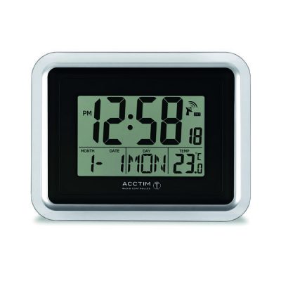 The Delta Lancia Radio Controlled Digital Clock (74573) is a versatile clock with radio-controlled timekeeping and a large, easily readable digital display. The Lancia picks up a radio time signal to help ensure precision timekeeping down to a split second. The versatile LCD screen automatically shows the current time, date, lunar phase and indoor temperature. This large clock measures 238mm for easy reading from across a room. The flexible design can be mounted on a wall or placed on your desk.