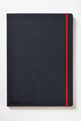 This premium Black n’ Red A4 notebook contains 144 pages of quality 90gsm Optik paper, which is ruled and numbered for neat, indexed notes. The casebound notebook features durable hard covers with a soft touch finish, as well as a red elasticated strap to help keep contents secure. The notebook also features an inside rear pocket for storage of additional loose pages and a ribbon marker for quick and easy reference. This pack contains 1 x A4 notebook.