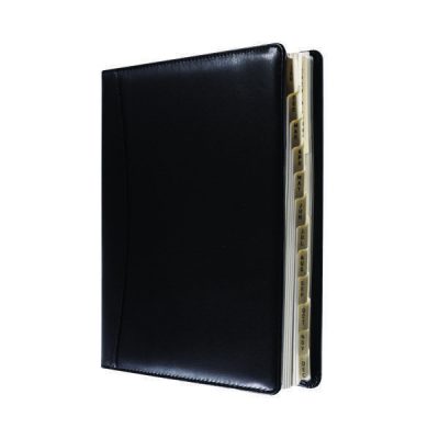 Ideal for professional use, this week to view compact diary from Collins comes in luxury padded faux leather covers and includes a pen holder and a zip-lock section for receipts and invoices. The diary is wirebound and refillable, so year on year you only need to replace the diary pages. The diary has a week to view layout with hourly appointments from 8am to 5pm. The compact organiser also includes monthly Mylar tabbing, removable A-Z personal directory and a notebook, along with current and forward year planners and 2 ribbon markers.