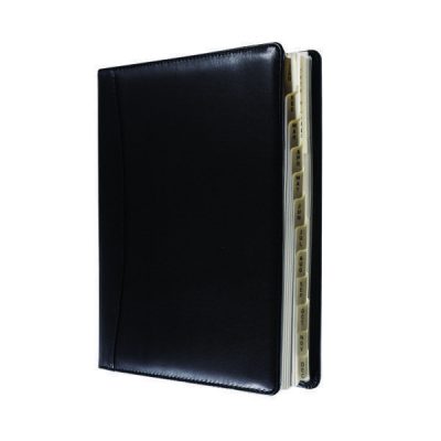 Ideal for professional use, this day per page diary from Collins comes in luxury padded faux leather cover and includes a pen holder and a zip-lock section for receipts and invoices. The diary is wirebound and refillable, so year on year you only need to replace the pages. Each day has its own page with hourly appointments from 8am to 8pm. The executive organiser also includes monthly Mylar tabbing, a removable A-Z personal directory and a notebook, along with current and forward year planners and 2 ribbon markers.