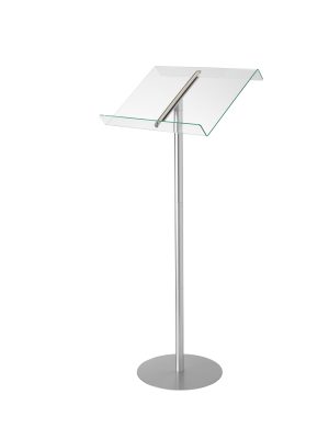 Ideal for presentations and public speaking, or for displaying catalogues, brochures and more, this Deflecto lectern comprises a sturdy aluminium frame with an attractive, glass effect acrylic top. The lectern is freestanding on a circular base and easily portable for versatile use. The lectern measures W500 x D355 x H1140mm.