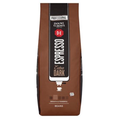 These Douwe Egberts Extra Dark Roast coffee beans create a smooth and powerful espresso, or provide an ideal base for specialty coffee drinks, such as a cappuccino or macchiato. Each bag contains 1kg of whole coffee beans.
