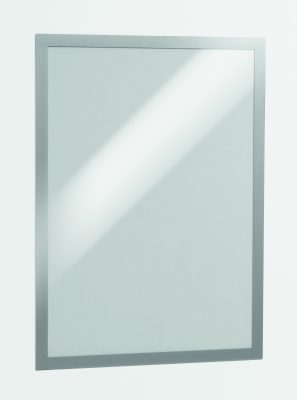 The self-adhesive infoframe DURAFRAME is the ideal solution for displaying information on solid and smooth surfaces. The inserts can be quickly exchanged thanks to the magnetic fold-back frame. When applied to glass, the information can be read from both sides and will leave no residue when removed. Perfect for displaying notices, signage, safety information in any workplace or at home.