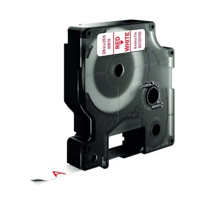 With red text on a white background, this Dymo D1 standard tape is ideal for labelling stationery, equipment, files, folders and more. Made from strong polyester, the tape features a strong self-adhesive backing that is suitable for almost all surfaces. Compatible with Dymo LabelManager and MobileLabeler label makers, the cassette slots in with ease. The tape is 9mm wide and comes supplied on a 7 metre roll.