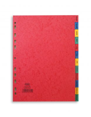 This bright Elba A4 January – December index is made from multicoloured, heavyweight pressboard for long lasting use. The index is multipunched for filing in standard ring binders and lever arch files and is labelled with the months of the year for quick and easy referencing.