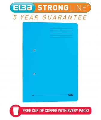 This quality Elba spring pocket file is made from durable 100% recycled manilla. The all metal transfer spring mechanism has a 32mm capacity and enables easy insertion, removal and rearranging of your A4 or foolscap documents. The file also features a pocket on the inside back cover for additional loose sheets. Ideal for colour coordinated filing. This pack contains 25 blue foolscap files.