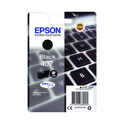 Epson DURABrite Ultra ink is a quick drying formula allowing documents and photos to be handled immediately after printing, Water, smudge and highlighter resistant so ideal for essential reports and archival documents. Each cartridge contains 41.2ml of black ink. With a print yield of up to 2,600 pages.