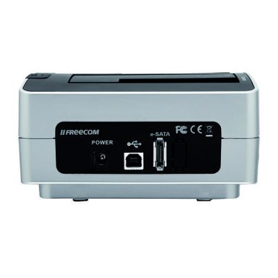 The Freecom Hard Drive Dock Duplicator is a fast and simple way to copy data from one internal drive to another. Click your 2.5in or 3.5in SATA drives into place, press the Duplicate button and the drive will be cloned automatically. It also functions as a dock for a single drive, with optional eSATA for a fast connection to your PC – great for accessing internal hard drives without having to open up your computer.
