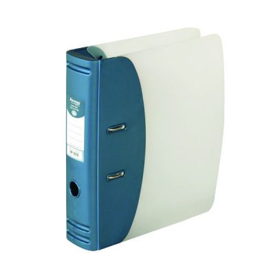 This heavy duty Hermes lever arch file is made from durable, 100% recyclable, water resistant polypropylene. The file has a 78mm spine and can hold up to 500 sheets of 80gsm A4 paper. The file also features a finger hole for easy retrieval from a shelf and a spine label for quick identification. This pack contains one A4 file with frosted polypropylene covers and a metallic blue spine.