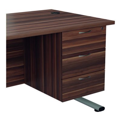 Offering a convenient and flexible place to store documents, papers and stationery, this fixed pedestal in Dark Walnut fits Jemini standard desking. The pedestal features 3 box drawers and measures W400 x D600 x H510mm.