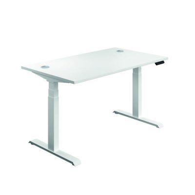 This Jemini Sit/Stand Desks features 3 stage height adjustability with a digital display and 4 pre-set buttons for an easy transition between sitting and standing. The 25mm thick desktop is mounted on sturdy cantilever legs and features dual cable management ports. This desk measures 1600x800x630-1290mm and comes finished in white with Leg Colour: Whites.