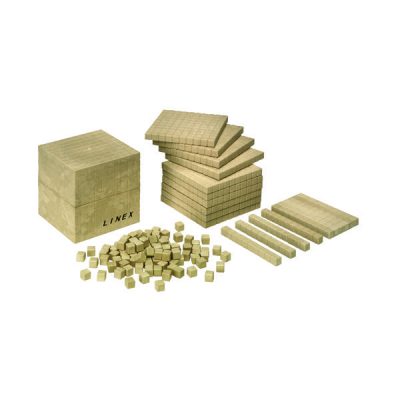 Enhance understanding of the decimal system as well as addition, subtraction, number sense, percentages and counting. Contains 121 parts. 1 thousand cube, 10 hundred flats, 10 ten rods, 100 units. For use in pre-school and primary school.