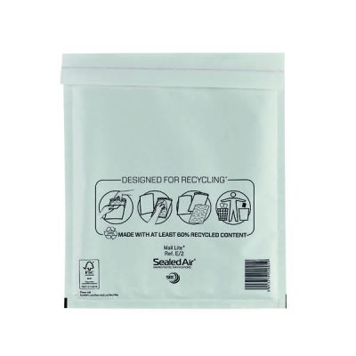 These lightweight Mail Lite postal bags feature an AirCap bubble lining for high performance protection for delicate and fragile items in transit. The mailers also feature a quality Kraft outer and strong self seal closure. These size E/2 bags measure 220 x 260mm. This pack contains 100 white postal bags.