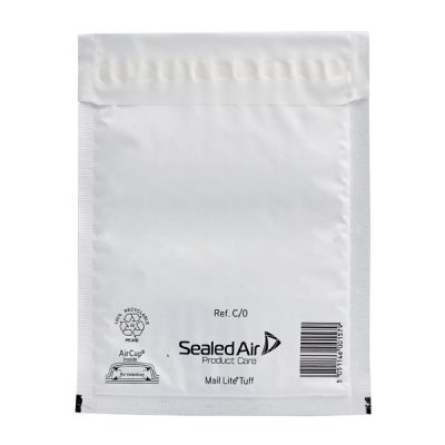 These Mail Lite Tuff cushioned mailers are made from polyethylene with a bubble lining to protect delicate and fragile items in transit. The polyethylene outer is tear, puncture and water resistant for improved protection. These C/0 mailers measure 150 x 210mm and feature a simple, convenient self seal strip. This pack contains 100 white mailers.