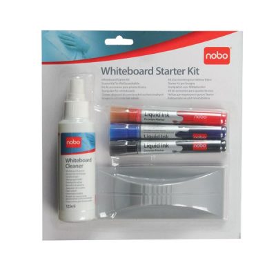 A complete starter kit with all the accessories you need to get started with your Nobo dry wipe whiteboard.