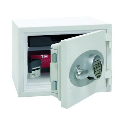 This Phoenix Titan safe is modern, compact and lightweight, made from newly developed, ultra-advanced fire insulation material. The lightest safe in the 1 hour fire rated class. For residential and business use, recommended for overnight cash risk of £1,500 or £15,000 valuables. Provides 60 minutes fire protection for paper documents, tested to the International NT Fire 017-60 fire test standard. Fitted with an advanced high security electronic lock with scrambled code as standard. Includes a pull out drawer and 5 internal key hooks. Supplied with floor fixing bolts. Safe measures W405 x D355 x H190mm.