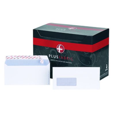 Constructed from strong 120gsm paper, these Plus Fabric DL wallet envelopes feature a bright white exterior and convenient address window measuring 39 x 93mm. The strong Power-Tac peel and seal flap keeps contents extra secure in transit and the envelopes also feature an easy open tear strip. These DL envelopes are suitable for A5 sheets folded once or A4 sheets folded twice. This pack contains 500 white envelopes.