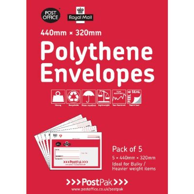 These polythene envelopes provide the perfect packaging for your mail. Durable and waterproof, they keep your post safely enclosed and protected from the environment. They are also provided with extra flexibility for items of an awkward shape, and do not require a postage label, as the envelope surface is easy to write on. Approved by Royal Mail Standards. Pack of 20.