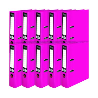 Keep documents and paperwork safe with these Pukka Brights lever arch files. The Brights come in a range of fun colours. With a useful lever arch mechanism suitable for A4 documents, the files are made in the UK from sustinable board and paper. Supplied in a pack of 10 pink files.