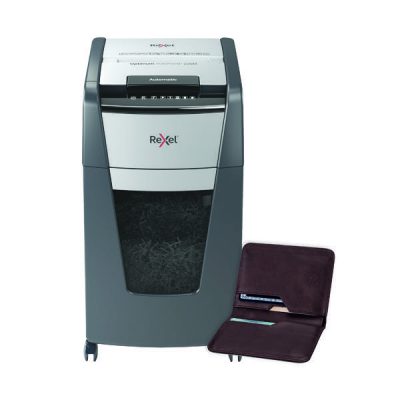 The Optimum AutoFeed+ 225M micro cut shredder automatically shreds up to 225x A4 sheets of paper (80gsm) at a time, into P-5 (2x15mm) micro cut pieces. Featuring a 60L, pull out bin and AutoFeed function which feeds the paper, removing the necessity to manually feed or remove staples and paper clips. With a touch control panel for ease of use, the shredder comes complete with caster wheels, for easy movement around the workplace. Buy selected Rexel Optimum Auto Feed Shredders and claim a free RFID Wallet.