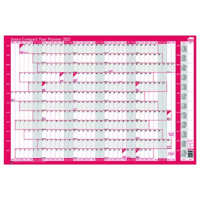 The Sasco compact year planner is ideal for smaller areas with limited space. Plan holidays and trips at work or at home. See the whole year at a glance and coordinate staff holidays, business meetings or office training. Alternatively, hang it at home to organise school holidays, work trips and other arrangements. The surface is laminated for you to write on with a whiteboard marker, which can easily be wiped off to make changes. All the same features as the larger original wall planner but half the size.