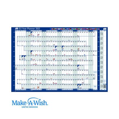 This Sasco EU Year Planner includes all EU public holidays, clearly marked with the relevant nation’s flag. Ideal for anyone working in a pan-European environment, this handy planner allows you to organise meetings, staff holidays and more for a full year. The planner is laminated for you to write on with a whiteboard marker, which can easily be wiped off to make changes. This planner is unmounted and measures W915 x 610mm. Help change the lives of children with critical illnesses. Choose Sasco and support Make-A-Wish. This year, Sasco planners are donating to Make-A-Wish UK. Together, we create life-changing wishes for children with critical illnesses.