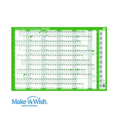 Plan out your financial year in the office or at home with this yearly planner from Sasco. Runs from April to March, to offer forward planning for the complete tax year, ideal for those working in finance or accounting. Document reminders for taxes and other financial related dates, or hang it at home to organise your household finances. The planner is laminated for you to write on with a whiteboard marker which can easily be wiped off to make changes. Help change the lives of children with critical illnesses. Choose Sasco and support Make-A-Wish. This year, Sasco planners are donating