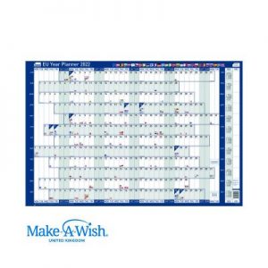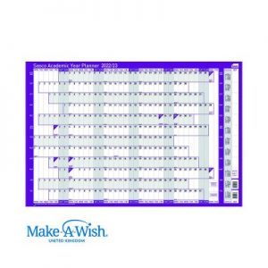 Plan holidays, trips, meetings and more at work or at home with this great wall planner from Sasco. See the whole year from January to December at a glance and coordinate holidays, important business meetings or training days in the office. Alternatively, hang it at home to organise school holidays, work trips and other arrangements. The surface is laminated for you to write on with a whiteboard marker, which can easily be wiped off to make changes. Help change the lives of children with critical illnesses. Choose Sasco and support Make-A-Wish This year, Sasco planners are donating