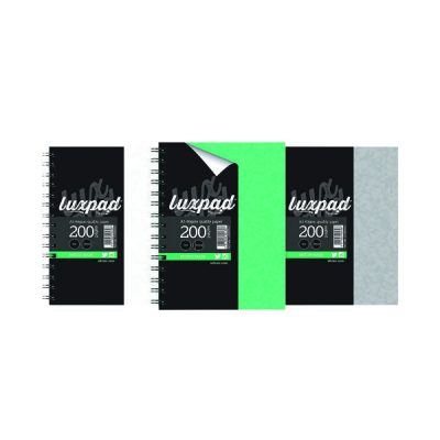 This Silvine Luxpad notebook contains 200 pages of high quality 80gsm pages, which are ruled with a margin for neat notes. The A5+ notebook is also perforated, allowing you to remove full size A5 pages, which are two-hole punched for filing. The twin wire binding also allows the notebook to lie flat. The hardback covers feature a stylish and colourful design in white, silver and green. This pack contains 3 x A5+ notebooks.