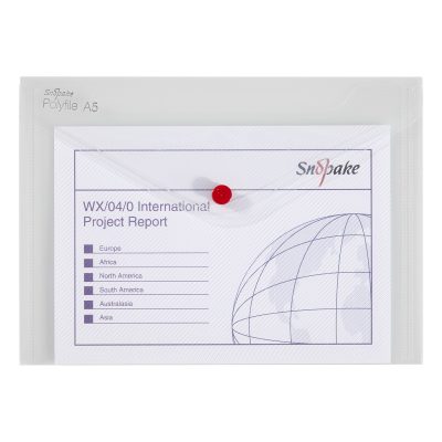 Secure your documents in style with the Snopake Polyfile. These envelope type wallets are made of durable polypropylene to protect your documents from damage, scuffing or spills. Each file features a press-stud closure for security and a clever index tab at the top for organised filing. Suitable for A5 filing, this pack contains 5 clear Polyfiles.