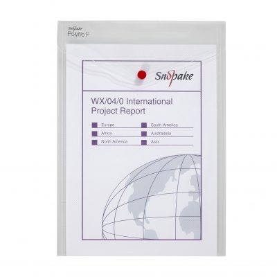 Secure your documents in style with the Snopake Polyfile. These polypropylene wallets come in a useful portrait format with a press stud envelope type flap on the top short edge. The durable polypropylene has an attractive clear ‘Superline’ finish for easy identification of contents. This pack contains 5 wallets for A4 documents.
