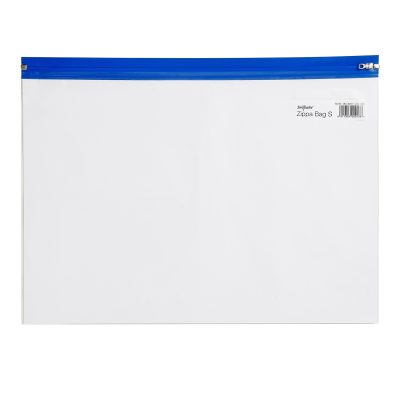 This transparent, flexible Snopake Zippa-Bag ‘S’ has a tough plastic closure with a metal zip pull for securing contents. Ideal for filing, storage and organisation in the office or home, this pack contains 25 bags with blue zip strips for easy identification. These bags are A4 in size.