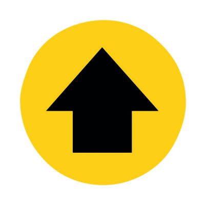 Industrial strength floor markers designed to help combat the spread of Coronavirus. These premium quality, 235mm wide, highly visible floor signs are printed onto the underside of a clear PVC film and laminated on the back surface with permanent adhesive. Suitable for use on dry, flat, clean surfaces, they are anti-slip laminate surface tested to R9 standard. This circular, infographic marker displays a directional arrow.
