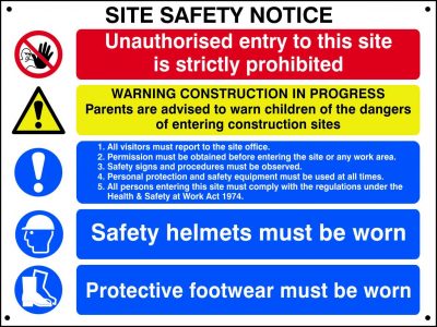 This sign is designed to alert employees and site visitors of safety procedures that they need to adhere to on construction sites. The sign features a bright design and universally recognisable symbols, helping to promote health and safety within your workplace. This notice is printed on high-quality 3mm Foamex and measures 800 x 600mm.