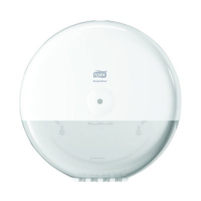 Innovative sheet by sheet dispensing through the centre of this efficient, high capacity, Tork SmartOne dispenser reduces costs and consumption. Ideal for washrooms with high traffic, cutting paper use by up to 40% compared to traditional jumbo toilet roll dispensers. The robust, twin dispenser holds large, 1,150 sheet, SmartOne toilet rolls, featuring a hygienic design which fully encloses the toilet roll to help reduce the risk of cross contamination. This pack contains 1 white dispenser measuring W268 x D156 x H269mm.
